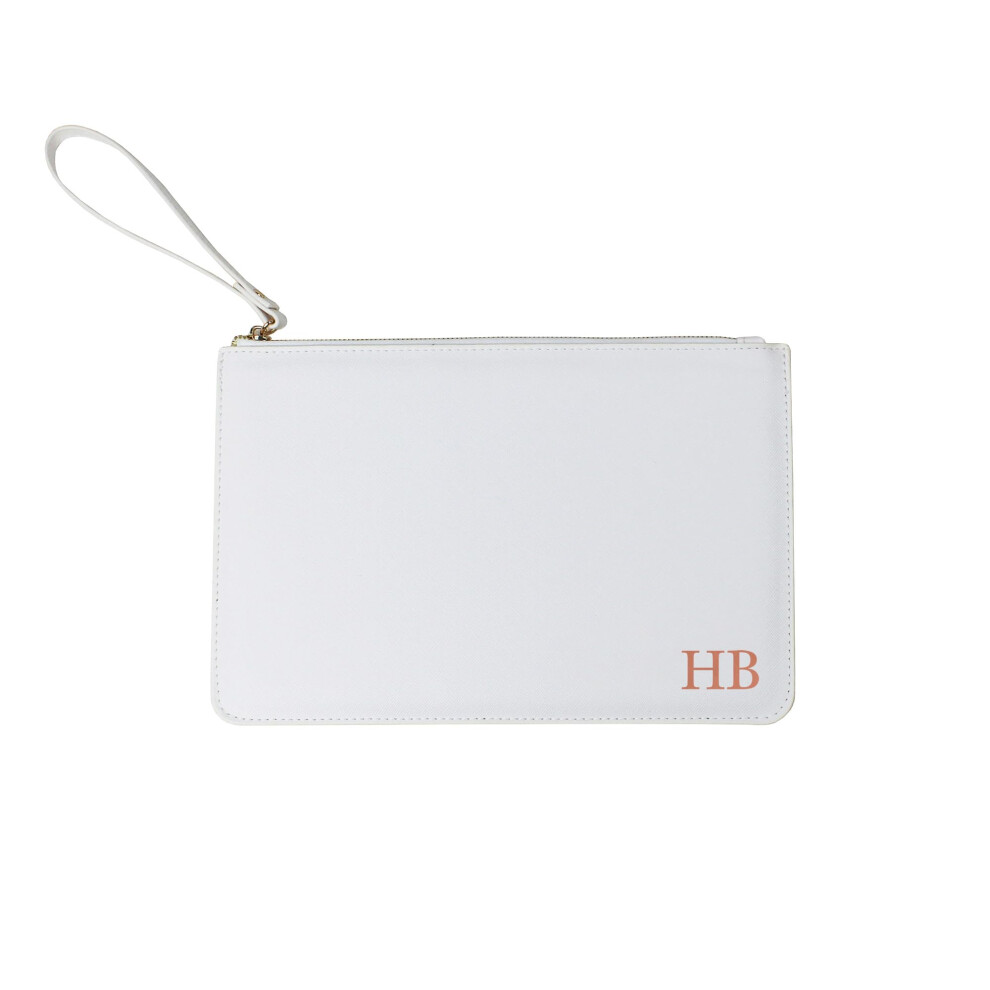 eBuyGB Personalised Bride Clutch Bag, PU Leather Monogram Initial Pouch, Bridal Party Gift, Maid of Honour Present, Bridesmaids Proposal Gifts, Wedding Accessory (White)