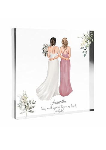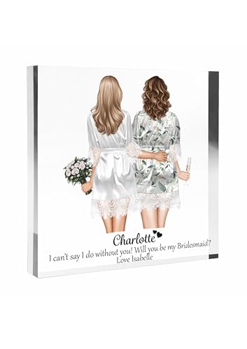 Personalised Bridesmaid Proposal Gift, Personalised Will You Be My Bridesmaid, Maid of Honour, Custom Illustration Portrait, 10cmx10cm Acrylic Block