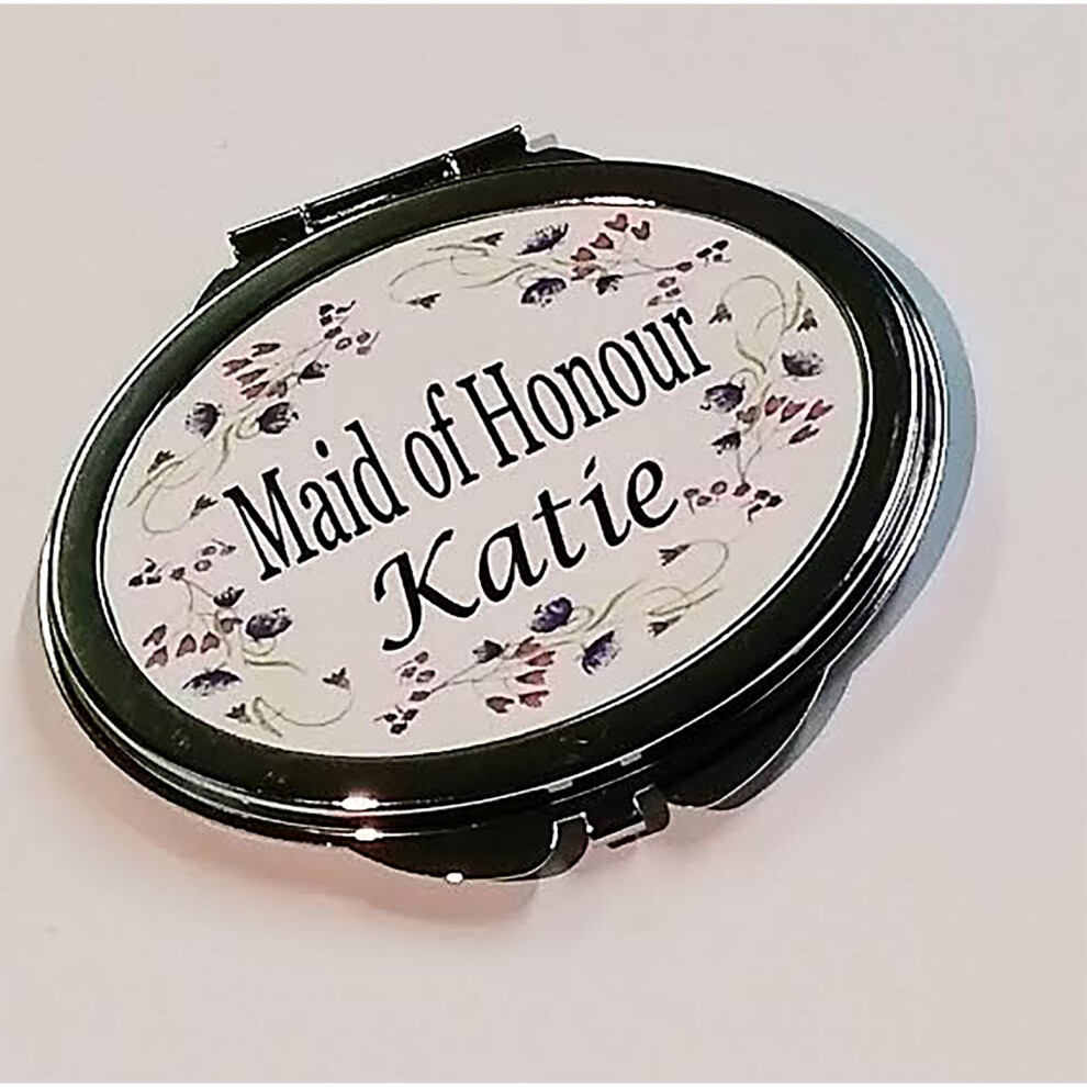 Personalised Purple Floral Maid of Honour, Bridesmaid, Flower Girl or Mother of the Bride Compact Mirror Wedding Gift