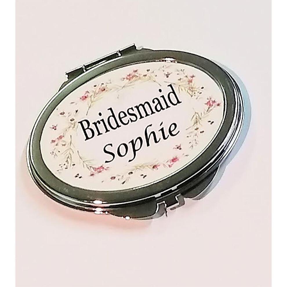 Personalised Pink Floral Bridesmaid, Flower Girl, Mother of the Bride or Maid of Honour Compact Mirror Wedding Gift