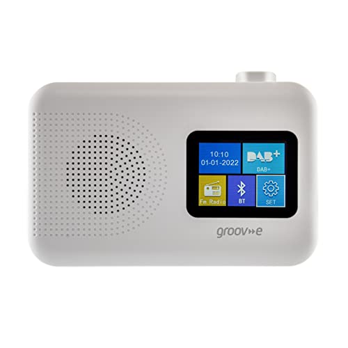 groov e Berlin DAB & FM Digital Radio - Colour Screen LCD Display - Built-In Alarm Clock & Bluetooth Connectivity - Mains or Battery Operated - Portable Radio - 60 Preset Stations - White