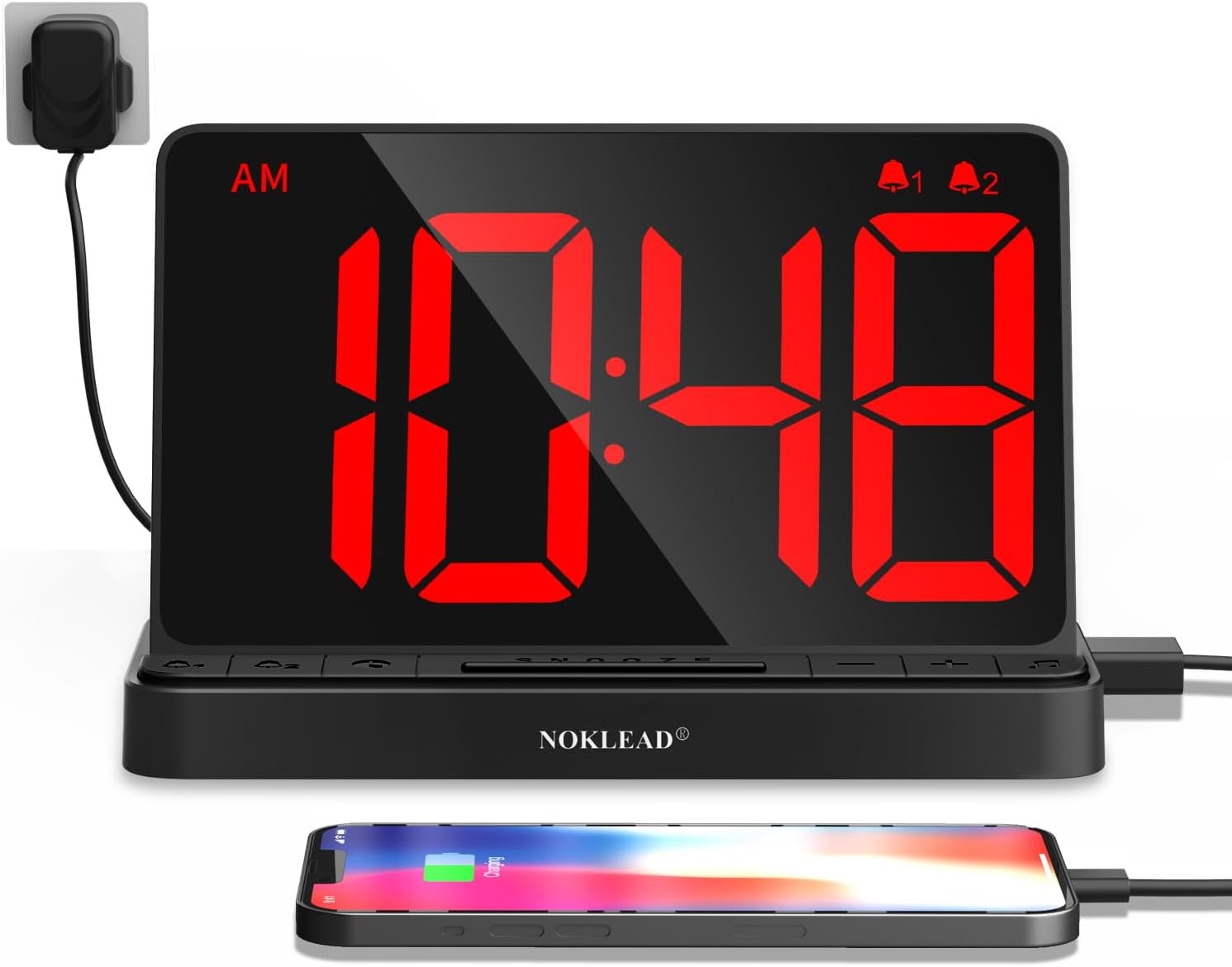 NOKLEAD Digital Alarm Clock with Large 6.5" RGB Colour Changing Display, Mains