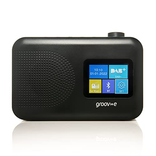 groov e Berlin DAB & FM Digital Radio - Colour Screen LCD Display - Built-In Alarm Clock & Bluetooth Connectivity - Mains or Battery Operated - Portable Radio - 60 Preset Stations - Black