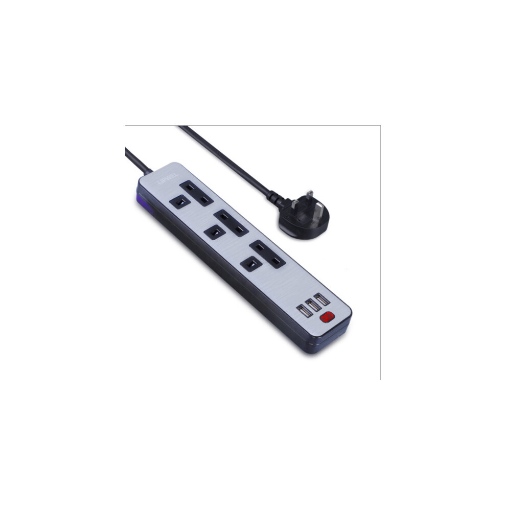 3 Gang Way Electric Extension Lead with 6 USB Cable Plug Socket UK Mains Power