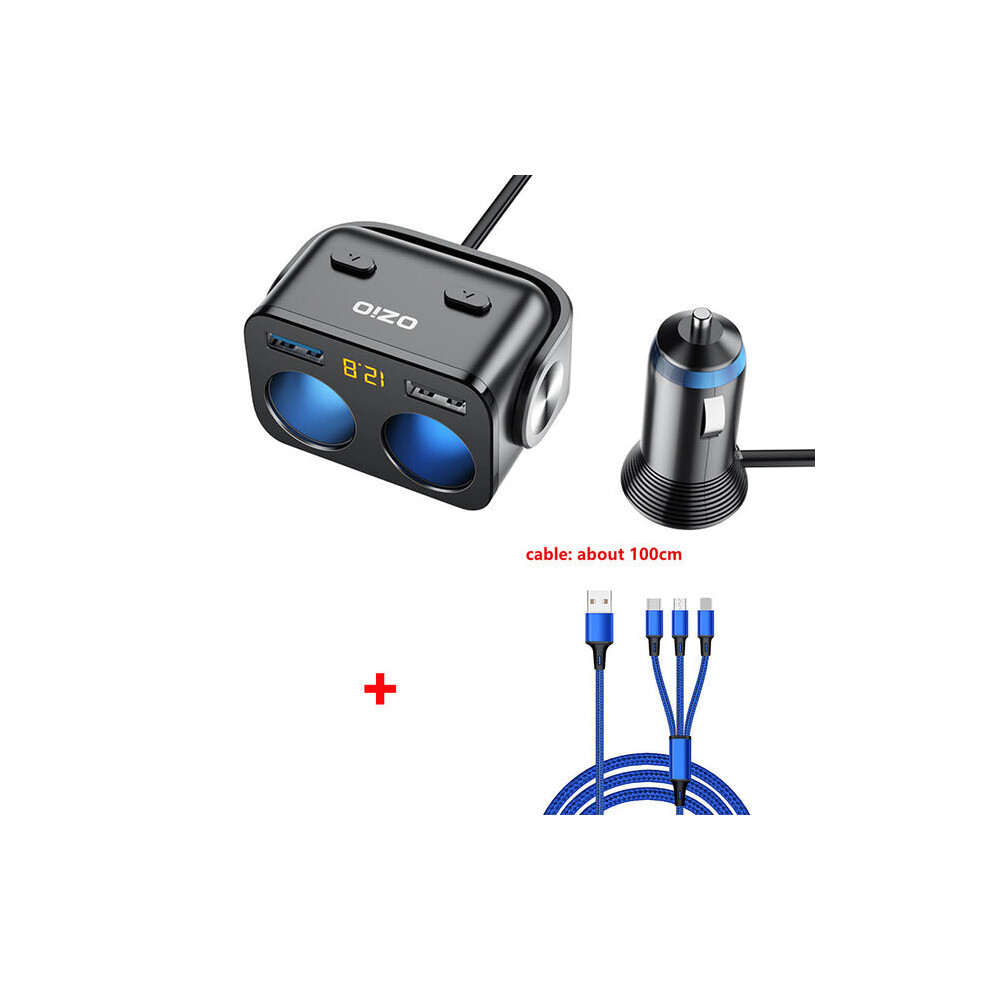 (With cable) Car Cigarette Lighter Socket Splitter QC 3.0 Quick Charger 12V Auto Cigarette Lighter Sockets Dual USB Charge Power Adapter Plug