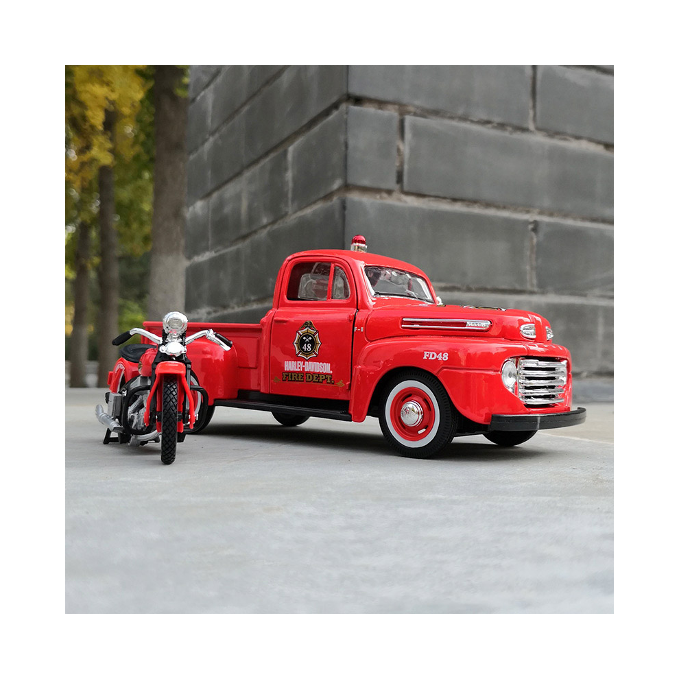 (Red) Maisto 1:24 Harley Version 1948 Ford F1 Pickup + Motorcycle Alloy Car