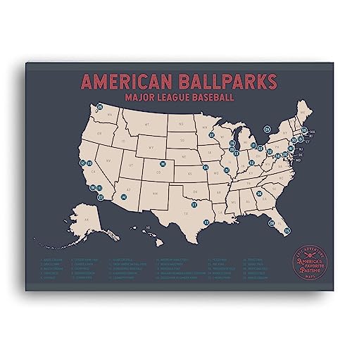 Epic Adventure Maps Major League Baseball Travel Map - Mark Your Travels to Your Favorite MLB Baseball stadiums for The Baseball Fan (Gray, 24x17)