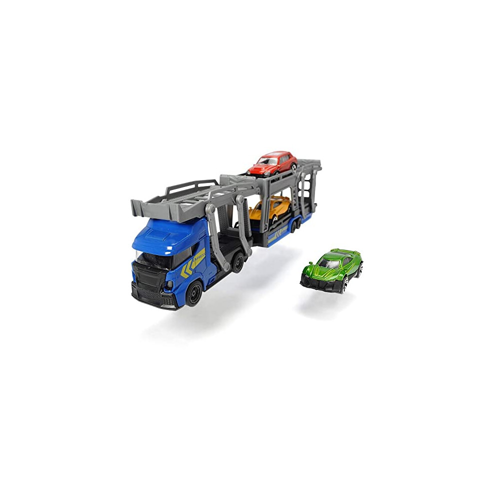 Majorette Car Carrier 2-asst - Free-wheeling car transporter with three die-cast toy cars - included in the set. - 28cm long