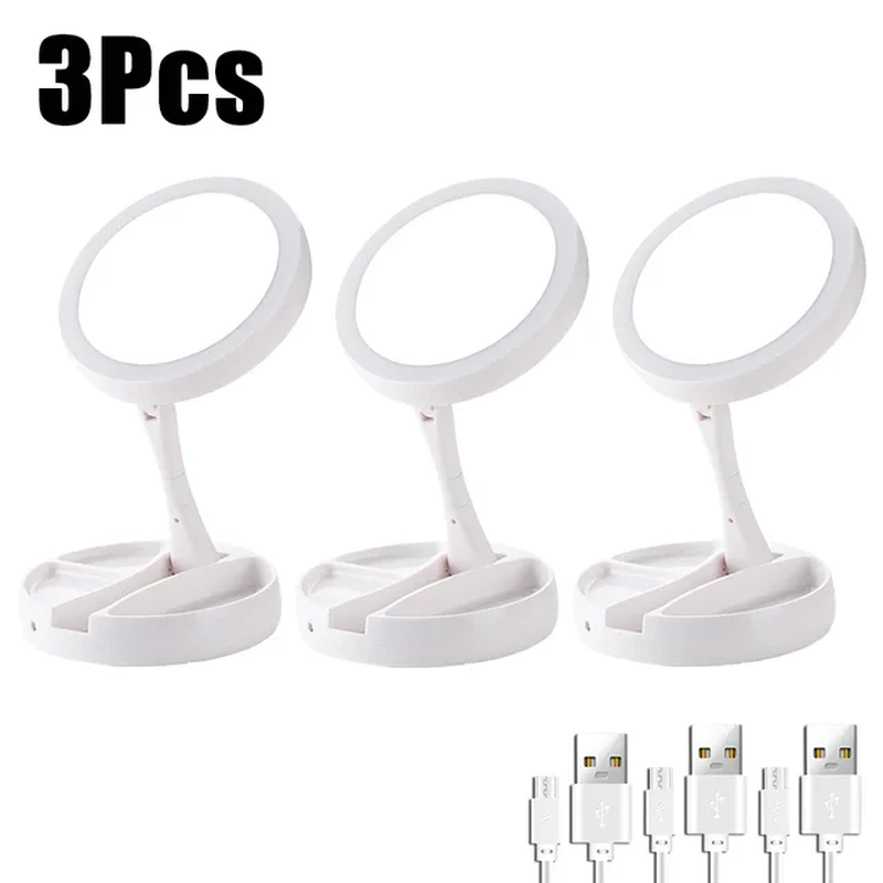 Make-up Mirror Rechargeable Light-filled Desktop Folding Portable Mirror LED Make-up Mirror with Light