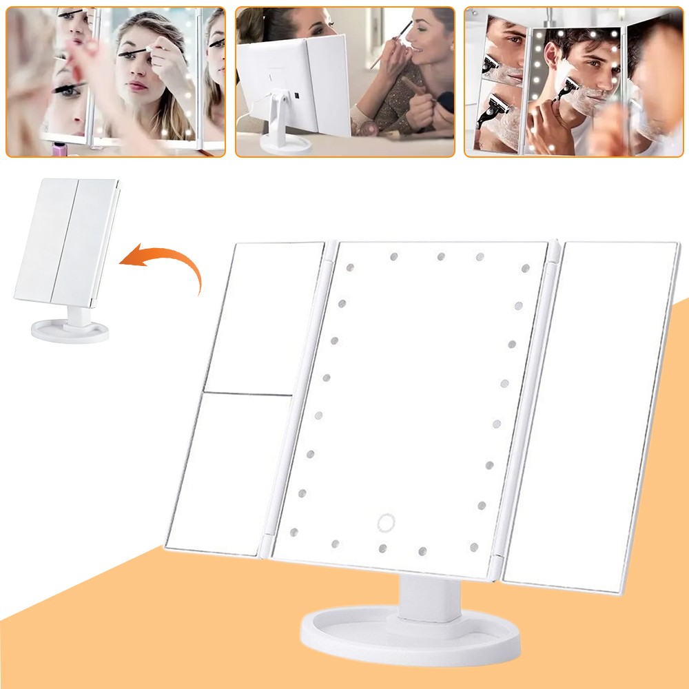 52 LED MAKE-UP FOLDABLE VANITY MIRROR Tabletop Light Up Cosmetic Touch Screen