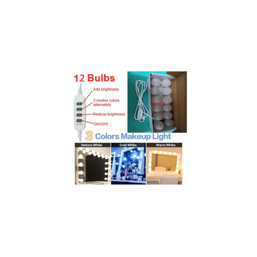 (12 bulbs) LED Make up Mirror Light Bulbs USB Hollywood Vanity Makeup Mirror Lights Bathroom Dressing Table Lighting Dimmable LED Wall Lamp
