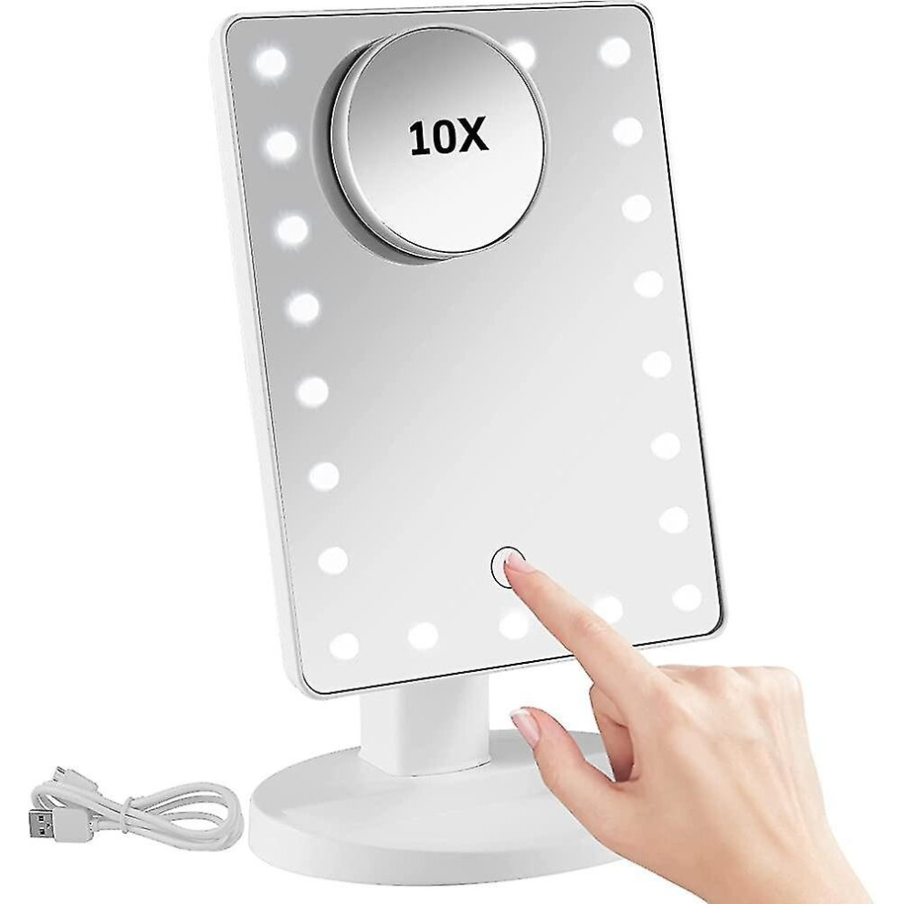 Hasipu Vanity Mirror with Lights, LED Make up Mirror, Light up Mirror with 10X Magnification and Brightness Adjustment, 3 Color Dimmable, Smart Touch & 360° Rotation