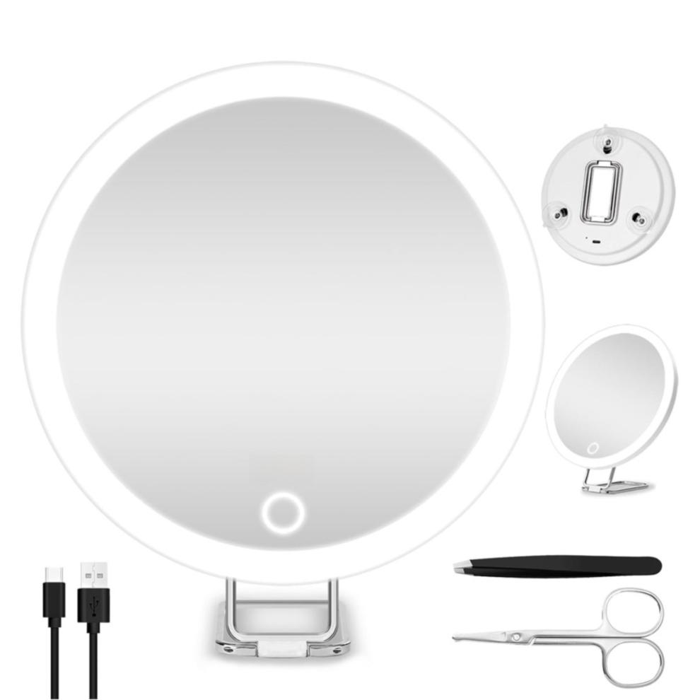 Make-Up Vanity Mirror w LED Light | 10X 360° Swivel Detach Storage Base Recharge