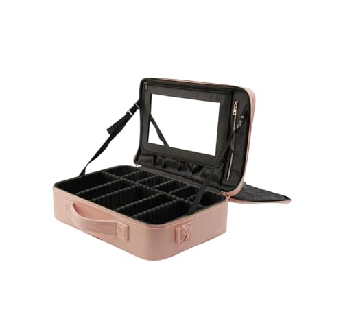 with Mirrors PU Leather Cosmetic Storage Portable Large Capacity Make-up Artist with Makeup Embroidery Makeup Bag(26 * 23 * 10cm)