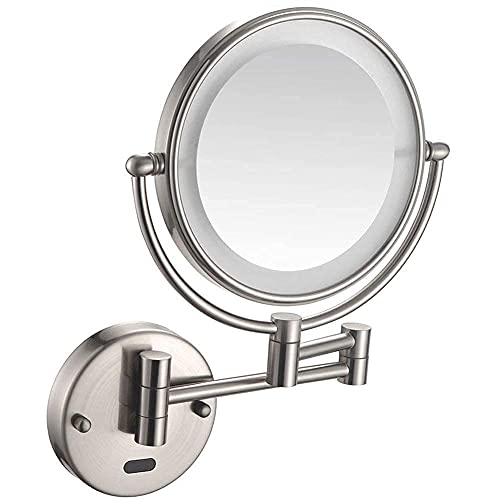 CWZMQK Bathroom Shaving Mirrors Make Up Wall Mounted LED Illuminated 5X Magnifying Sensor Mirror Concealed Install for Hotel Vanity Two Swivel shallow (Color : Brushed)