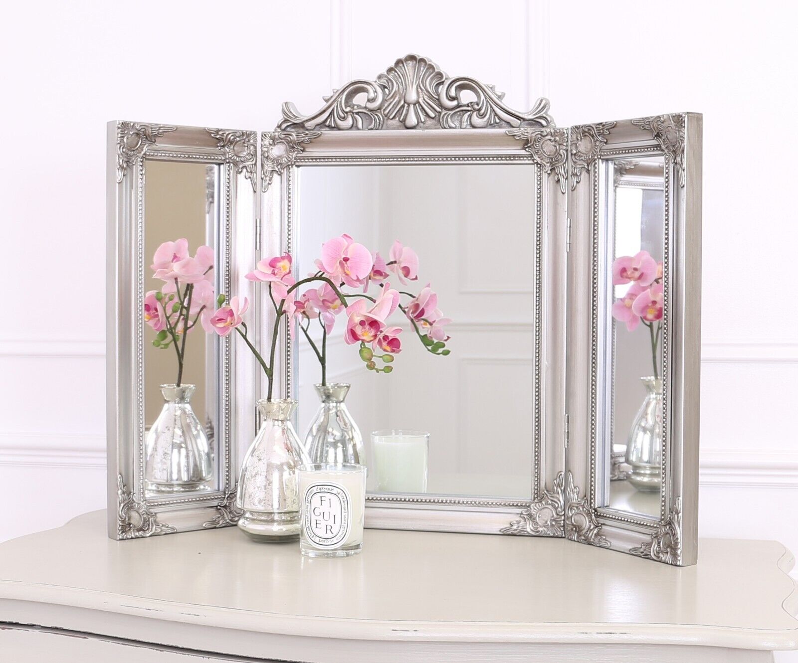 Silver Triple Dressing Table Bedroom Make Up Vanity Mirror
