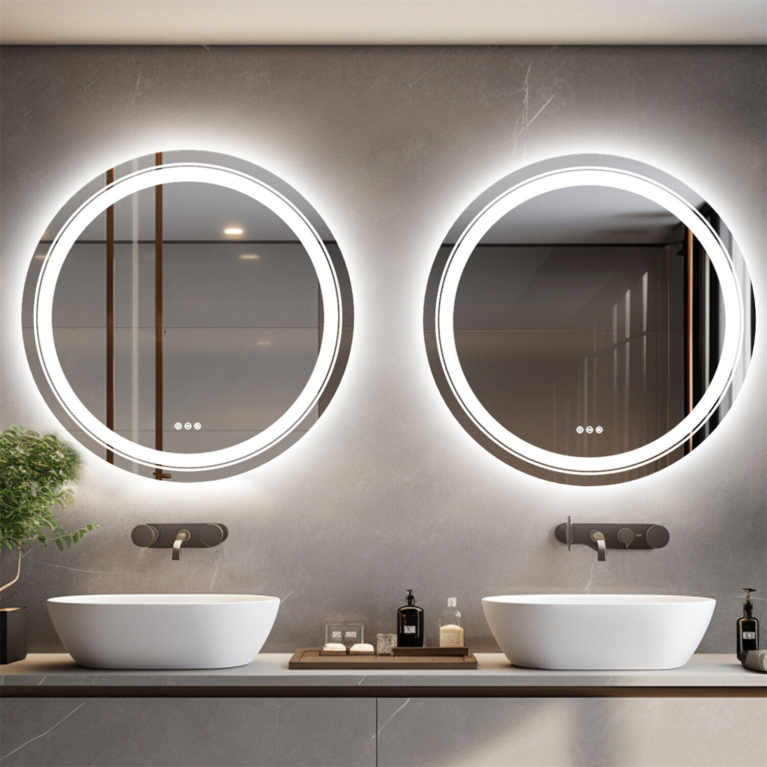 LUVODI 24" Round LED Illuminated Bathroom Mirror Wall Mounted Make Up Mirrors UK