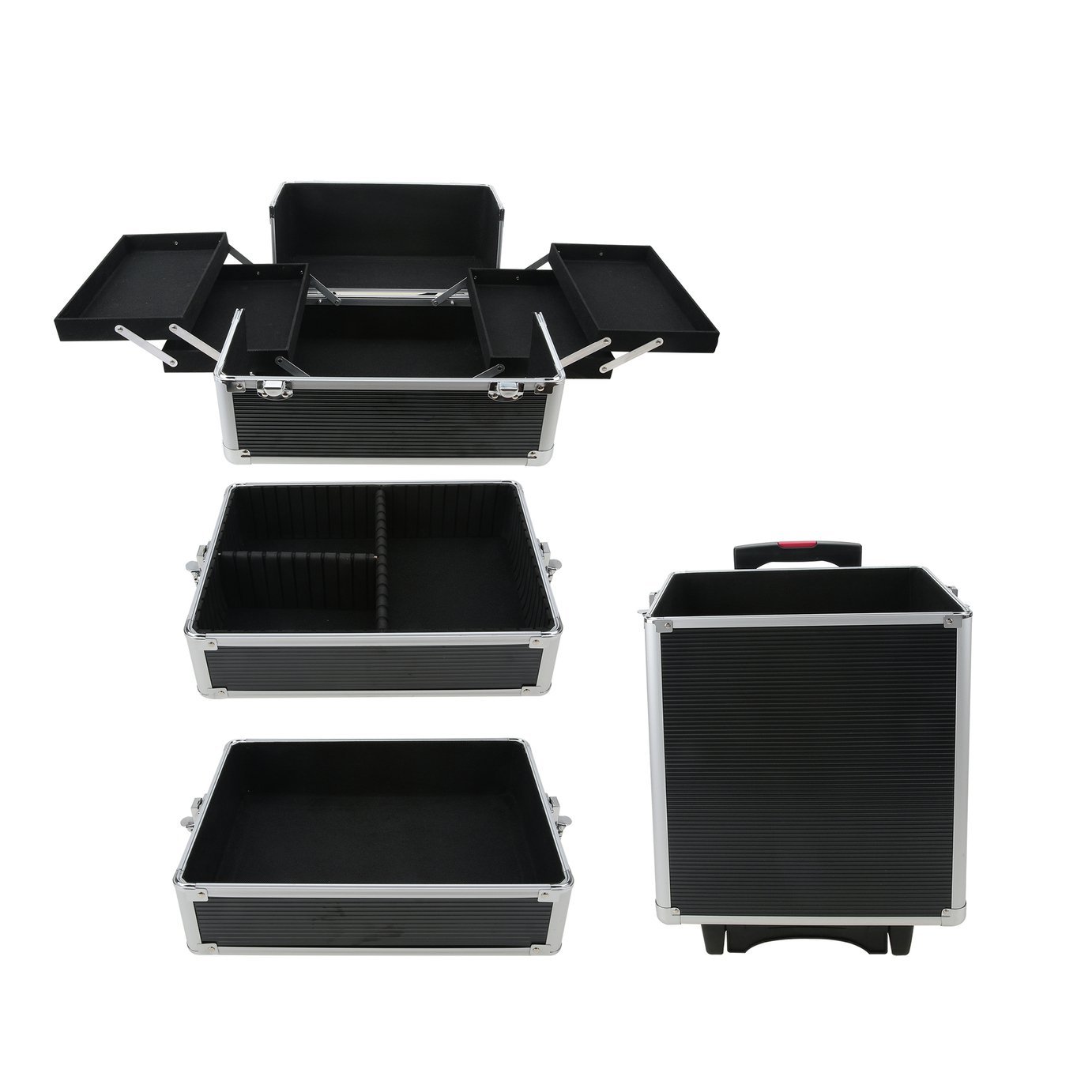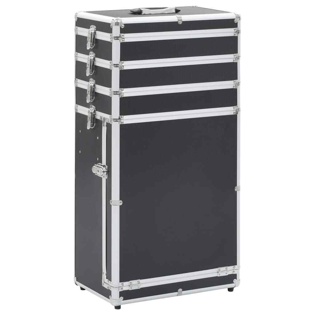 vidaXL Make-up Trolley Black Aluminium Hard Beauty Trolley Cosmetic Suitcase