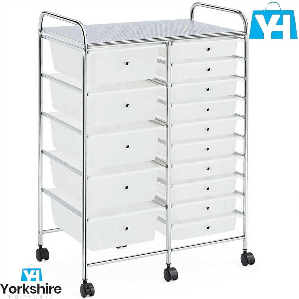 White 15 Drawer Home Office Salon Make Up Mobile Storage Trolley Unit