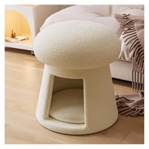 SJWJWOO Stool for Vanity Desk with Cat Hideaway, Make up Vanity Stool with Thick Padded Vanity Seat for Bedroom Living Room,white