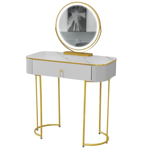 Nouvage Design Premium Dressing Table with Adjustable LED Mirror in White Gold 80cm Dressing Table with Mirror Bedroom Dressing Tables including drawer for make-up organiser vanity makeup table set