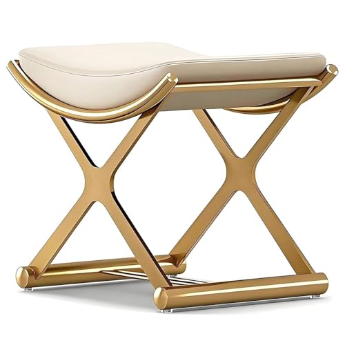 Lefedrasticity Gold Vanity Stool Chair Makeup Stool with Leather Cushioned Small Ottoman Foot Rest Modern Make Up Chair Upholstered Vanity Ottoman for Bedroom Living Room Bathroom Couch