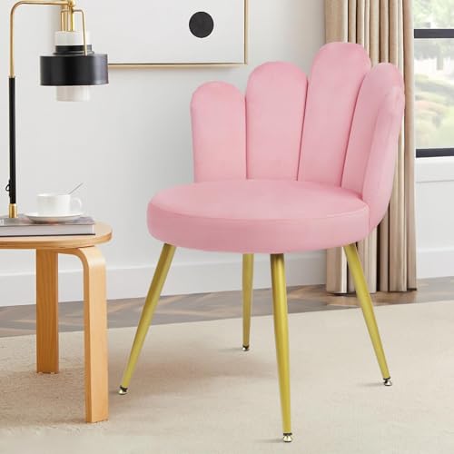 CLATINA Modern Velvet Make Up Vanity Chair, Flower Shaped Back Accent Chair Armchair with Gold Metal Legs, Cute Girl Vanity Chair No Wheels for Home Office Bedroom Dressing Living Room, Pink, 1PK