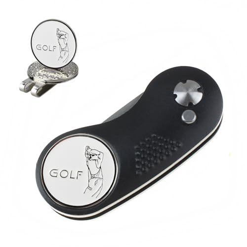 KOFULL Pitch Mark Repair Tool+2 Ball Maker+Clip Golf Pitch Mark Repairer Divot Repair Tool Switchblade Golf Green Repair Fork Portable and Folding Pitch-1 piece Black