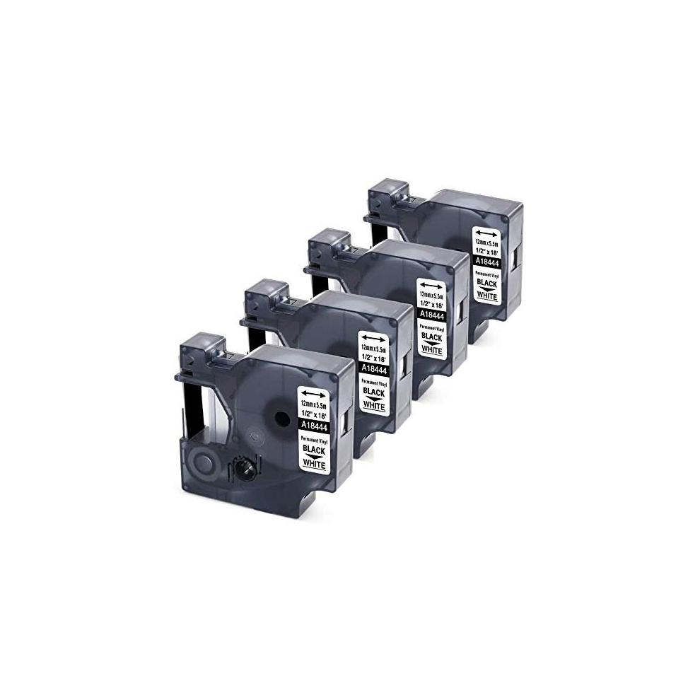 4X MarkField Compatible Label Replacement for Dymo Rhino 18444 White Industrial Vinyl Tape Work for DYMO Rhino 5200, 4200, 6000 Industrial Label Maker, 12mm x 5.5m, 4-Pack