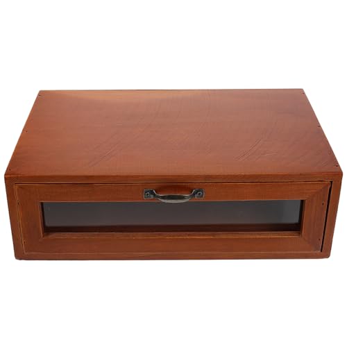 TOVINANNA Vintage Wooden Desktop Storage Box with Single Acrylic Sundries Holder for Jewelry and Makeup Organiser Compact Office and Home Storage Container for Tidy Desks