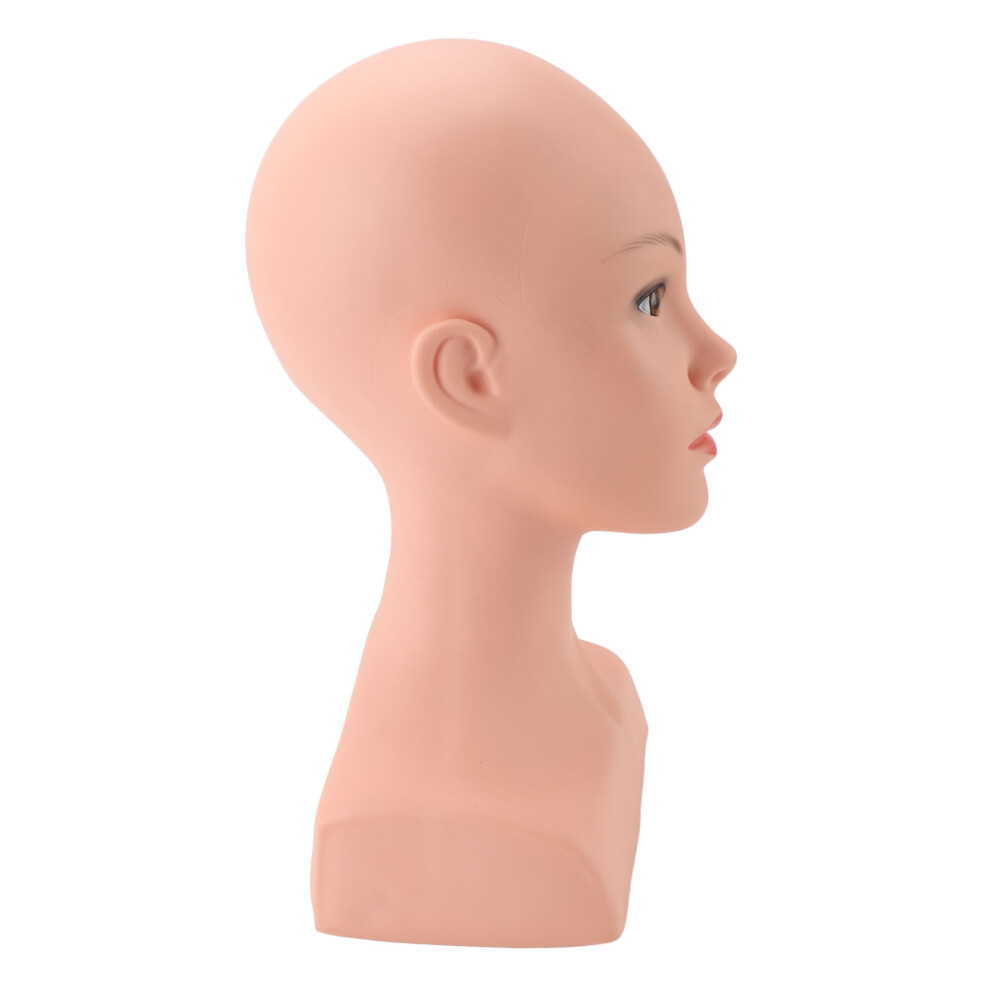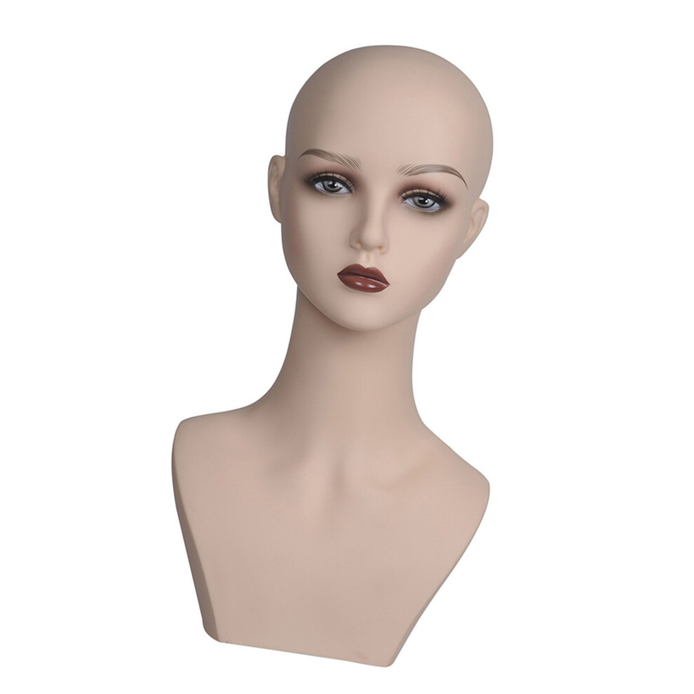 Female Bald Mannequin Head with Shoulder PVC Professional Cosmetology Face Makeup Doll Head for Hats Eyeglasses Wig Making Display