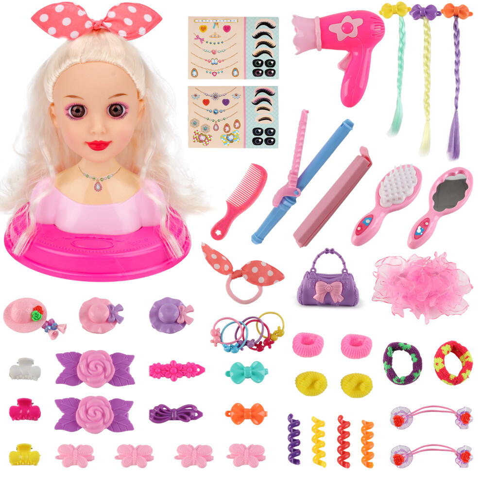 Kaoliscious Kids Hairdressing Makeup Styling Head Doll with Hairdryer and Hairpin, 40PCS Girl's Pretend Play Makeup Set, Hair Styling Head Doll 2025 Christmas and Birthday Gift