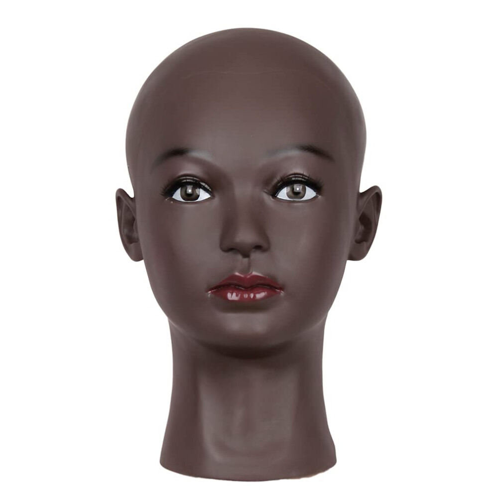 HAIRWAY Female Bald Mannequin Head Professional Cosmetology Face Makeup Doll Head for Wig Making Display Hats Eyeglasses Wig Head with T Pins (Dark Br