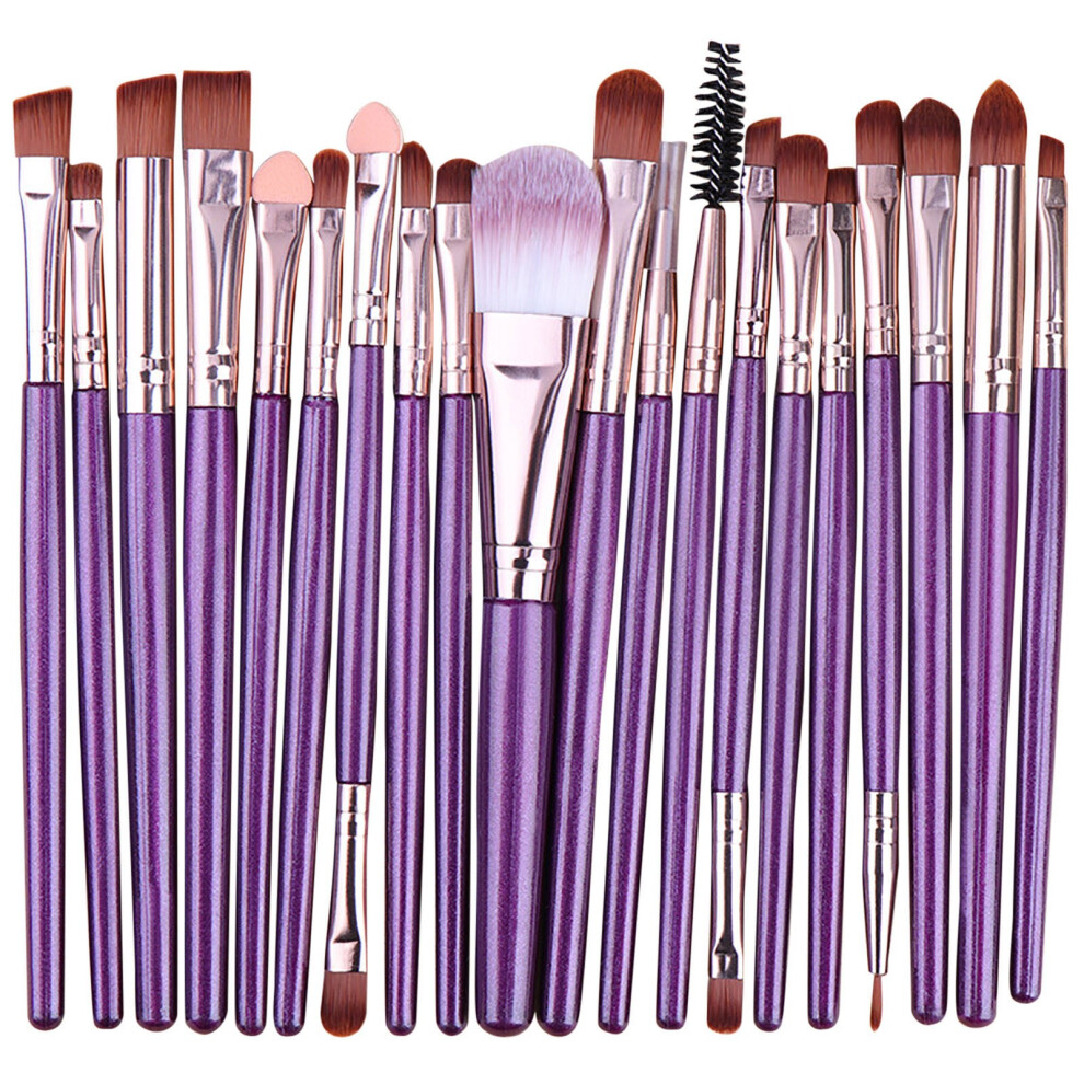 (Purple) 20 Pcs Makeup Brush Set Tools Make-up Toiletry Kit Wool Make Up Brush Set