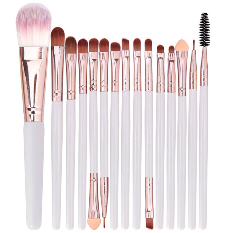 (White) 15 Pcs Makeup Brush Set Tools Make-up Toiletry Kit Wool Make Up Brush Set