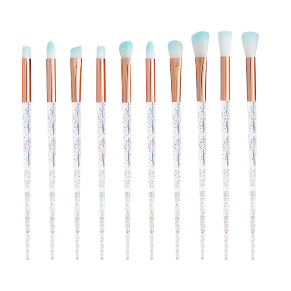 Crystal Handles Design Makeup Brush Set Essential Make-up Brushes Kit Blending Blush Concealer Brushes Transparent Plastic Handle High Density No