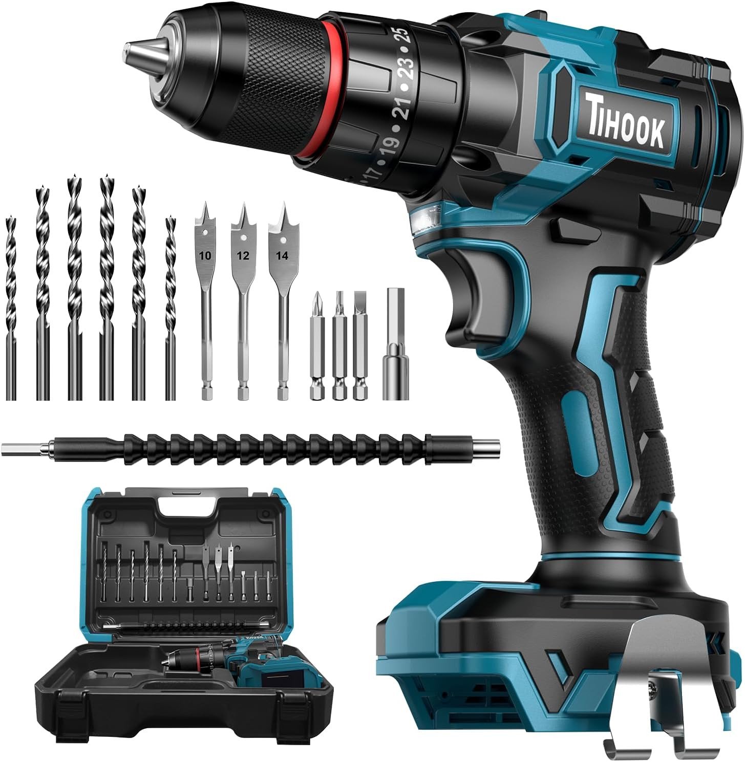 Ginour 21V Brushless Cordless Combi Drill Set, 2x2.0Ah, Hammer Drill 50Nm, compatible with Makita 18V Battery, 23+3 Torque, 2 Speed, 48PCS Electric S