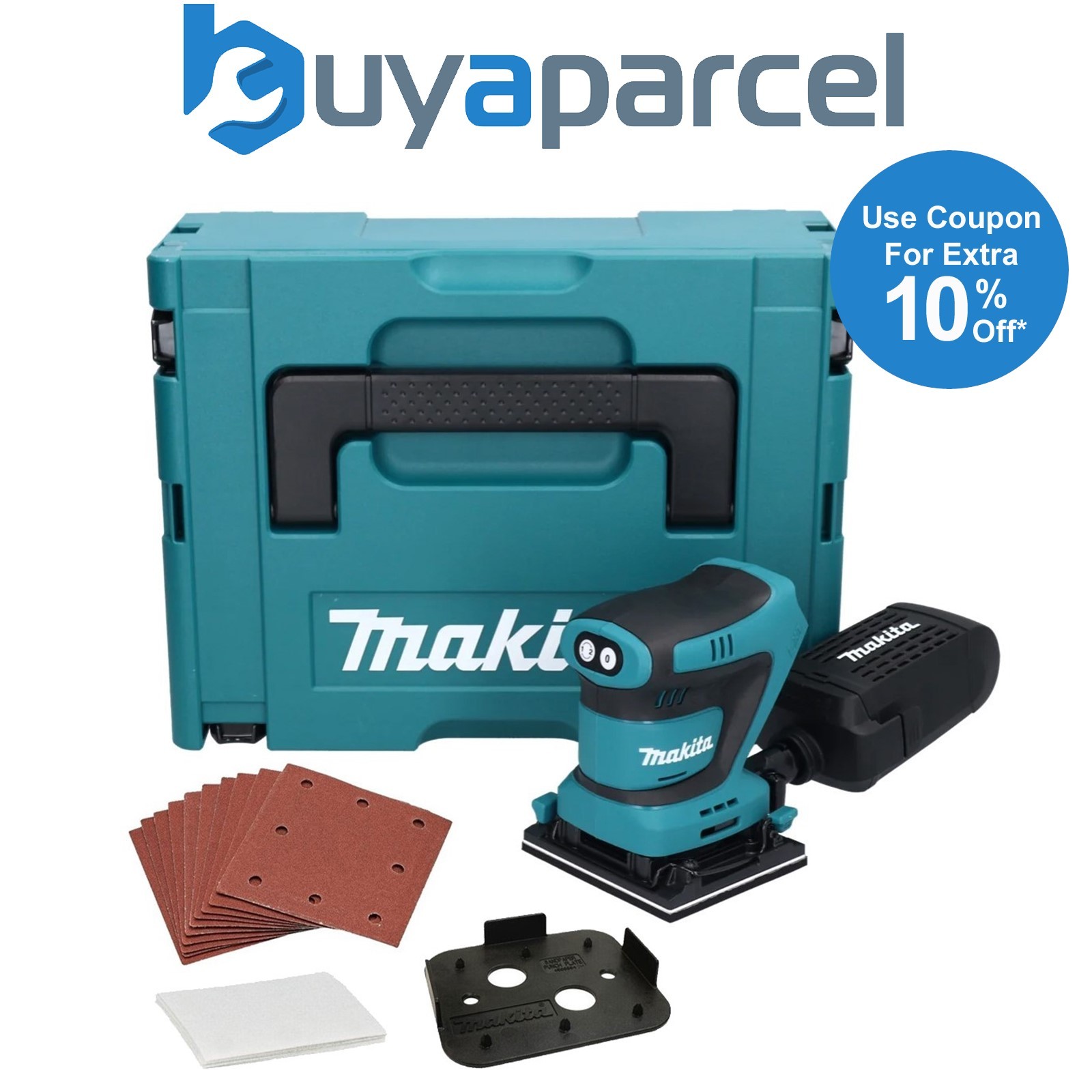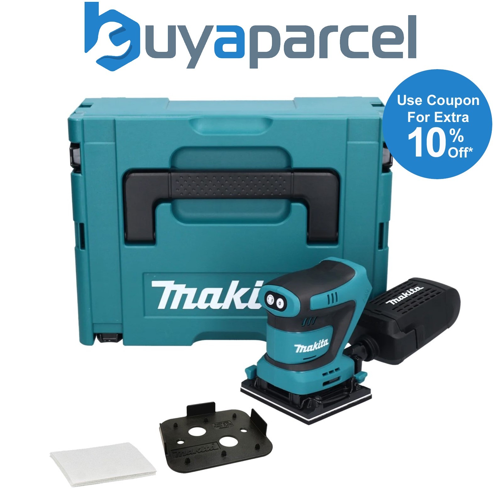 Makita DBO481ZJ 18v LXT 114mm 1/4 Sheet Finishing Cordless Palm Sander + Makpac
