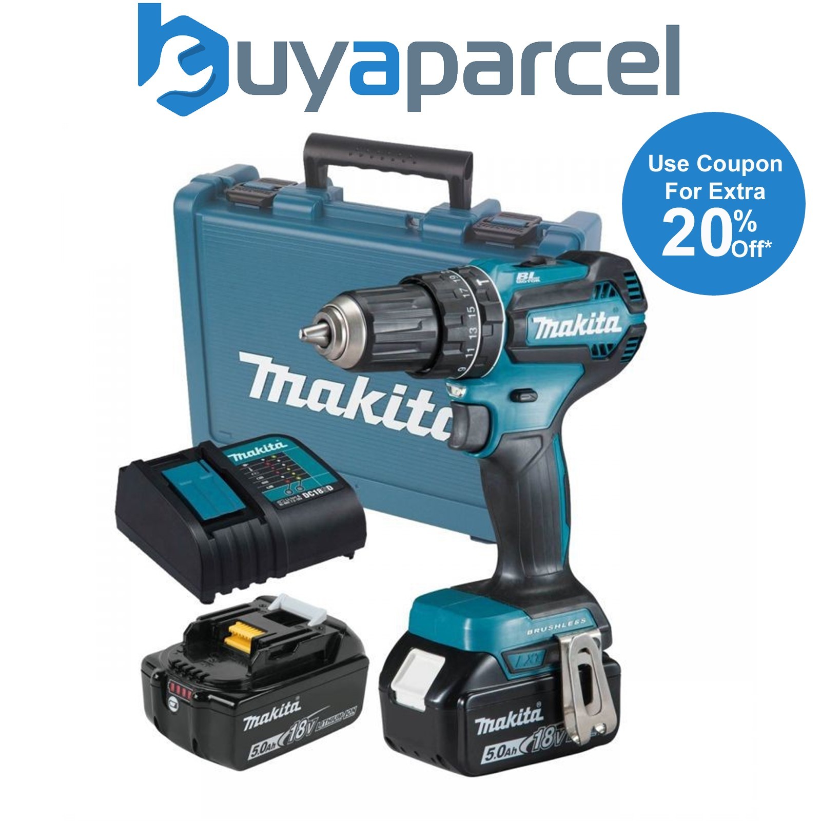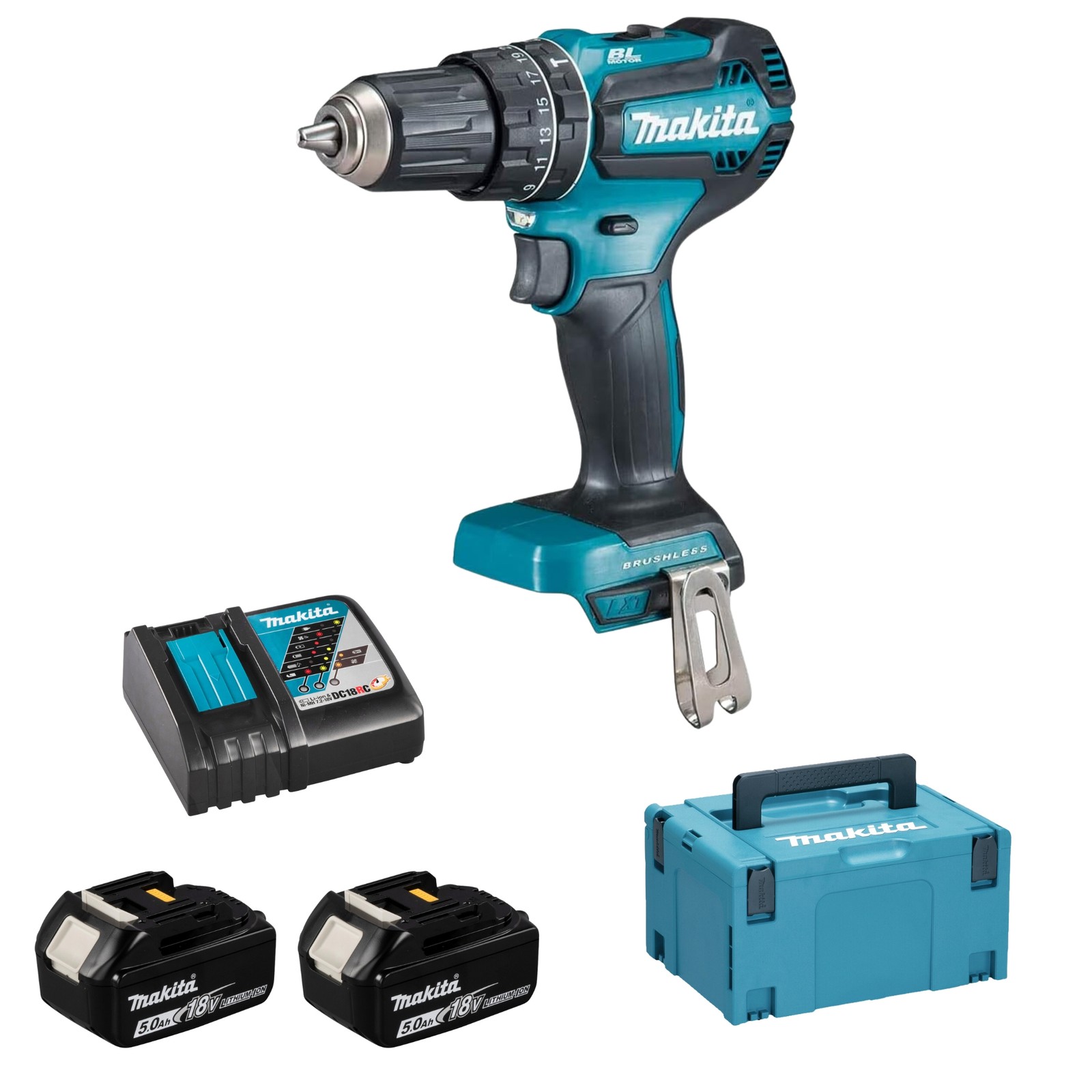 Makita DHP485 18V Brushless Combi Drill with 2 x 5.0Ah Batteries, Charger & Case