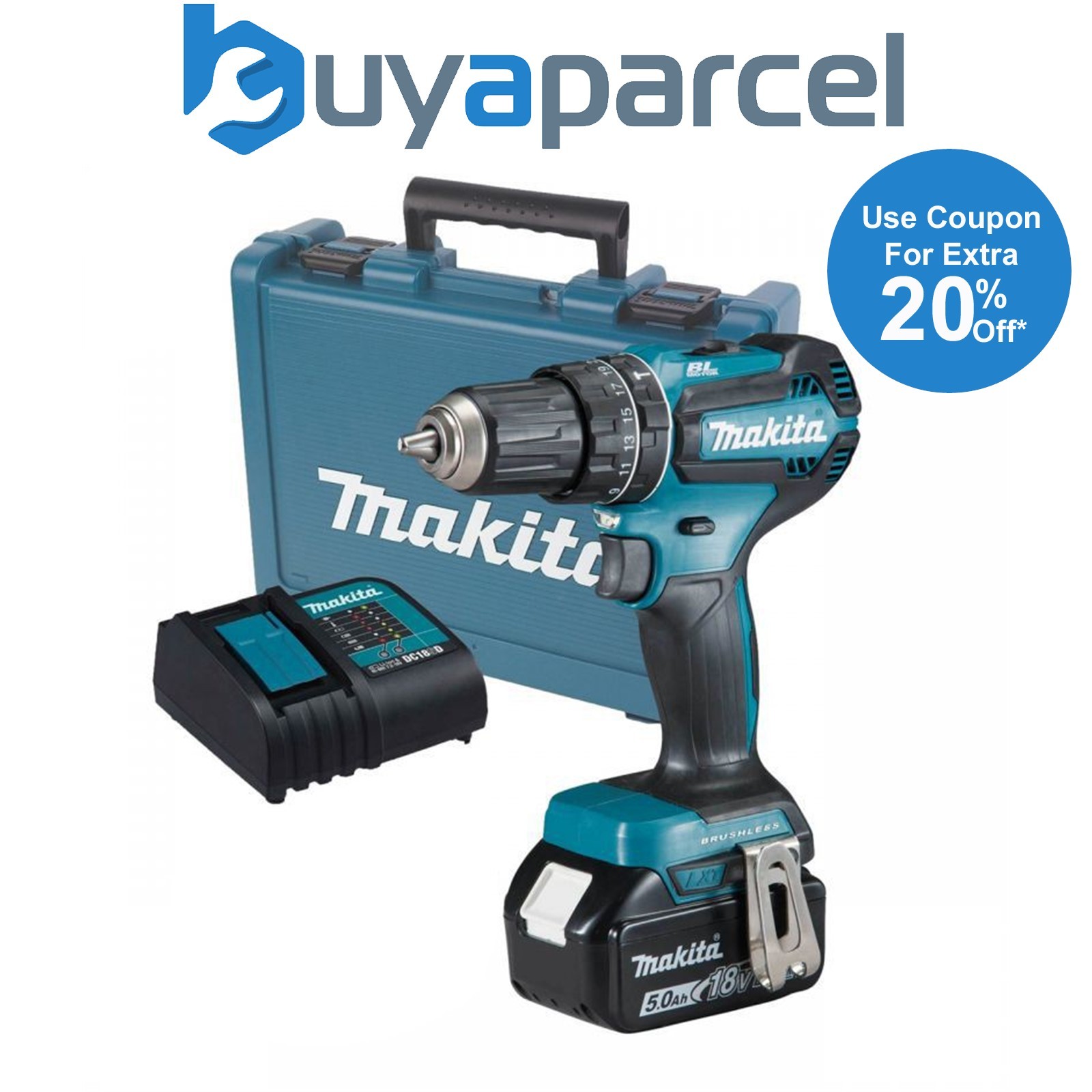 Makita DHP485 18V LXT Brushless Combi Drill With 1 x 5.0Ah Battery & Charger
