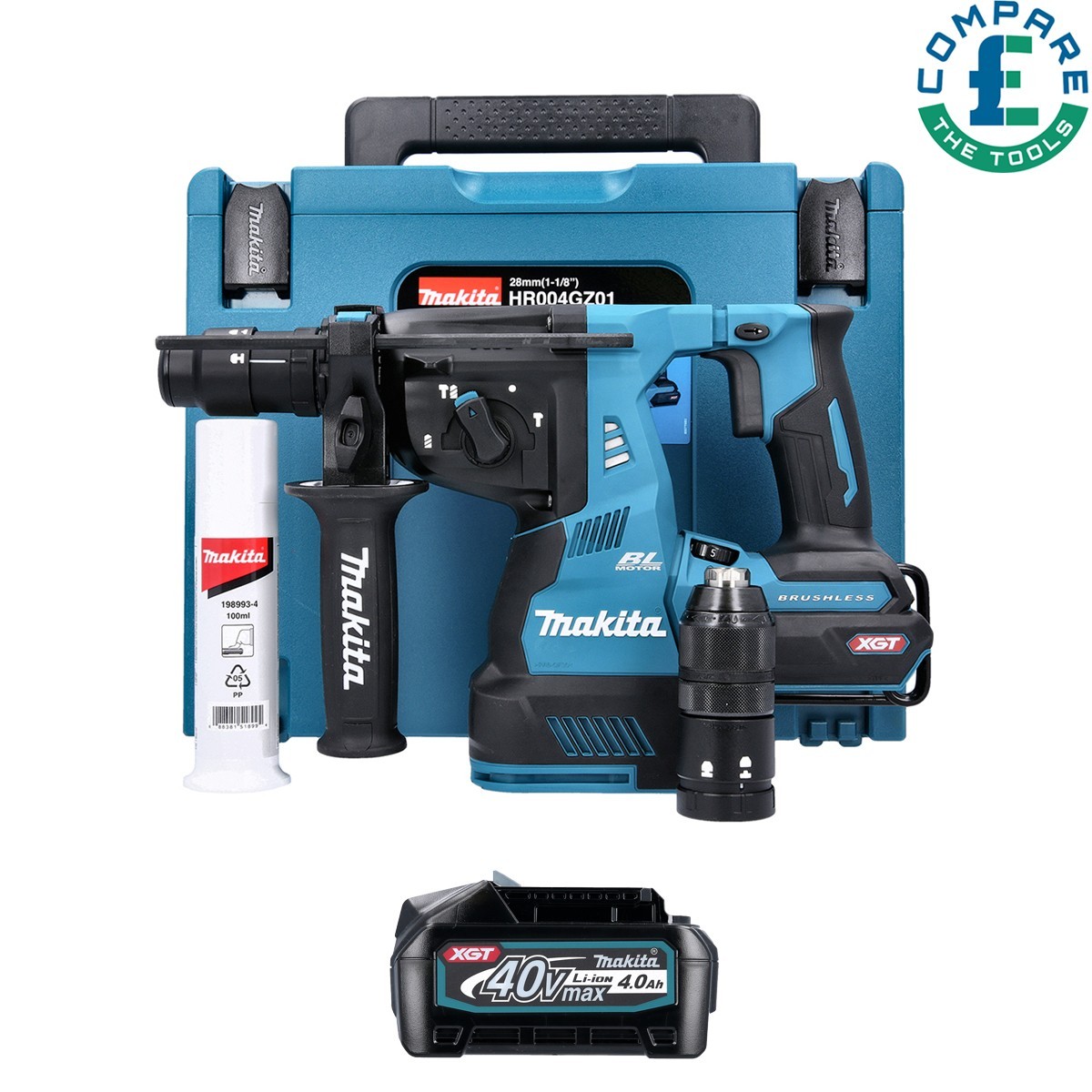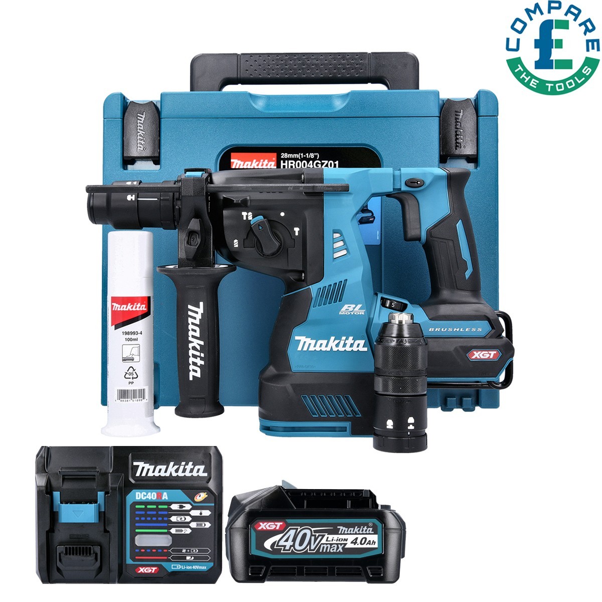 Makita HR004GZ01 40V SDS+Rotary Hammer Drill + 1 x 4Ah Battery, Charger & Case