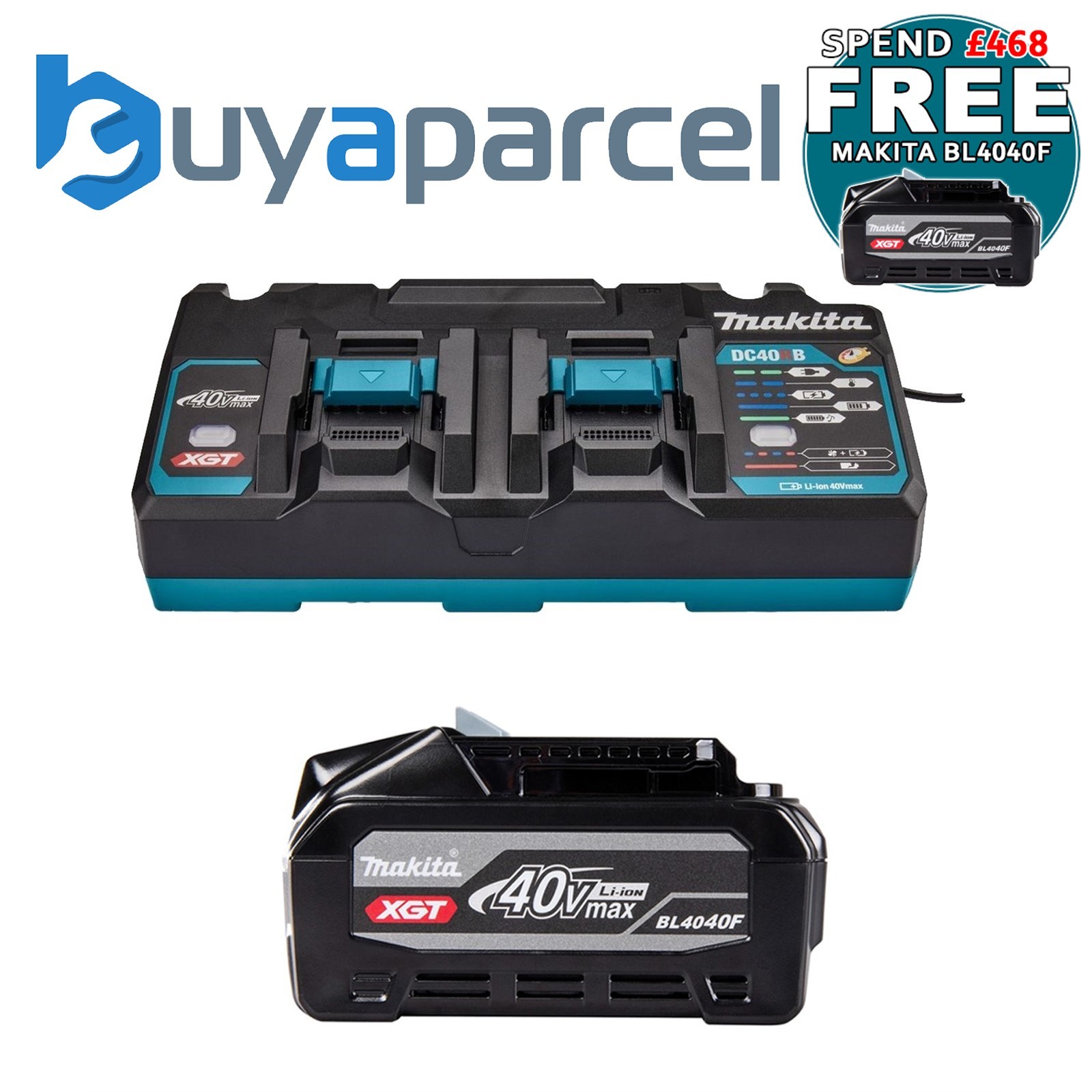 Makita BL4040F 40V Max 4Ah Li-ion XGT Battery + DC40RB 40V Twin Fast Charger