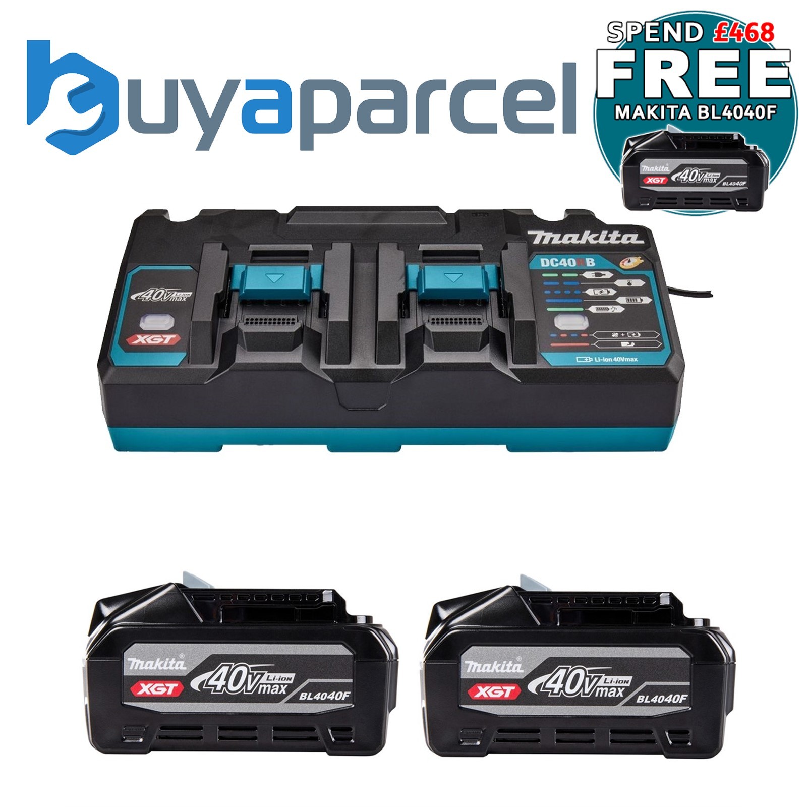 Makita BL4040F X2 40V Max 4Ah XGT Battery + DC40RB Dual Fast Twin Charger