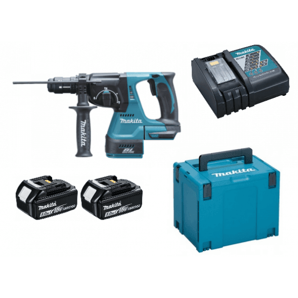 Makita DHR165RTJ Cordless Hammer Drill for SDS-Plus 18 V / 5.0 Ah, 2 Batteries and Charger in Makpac