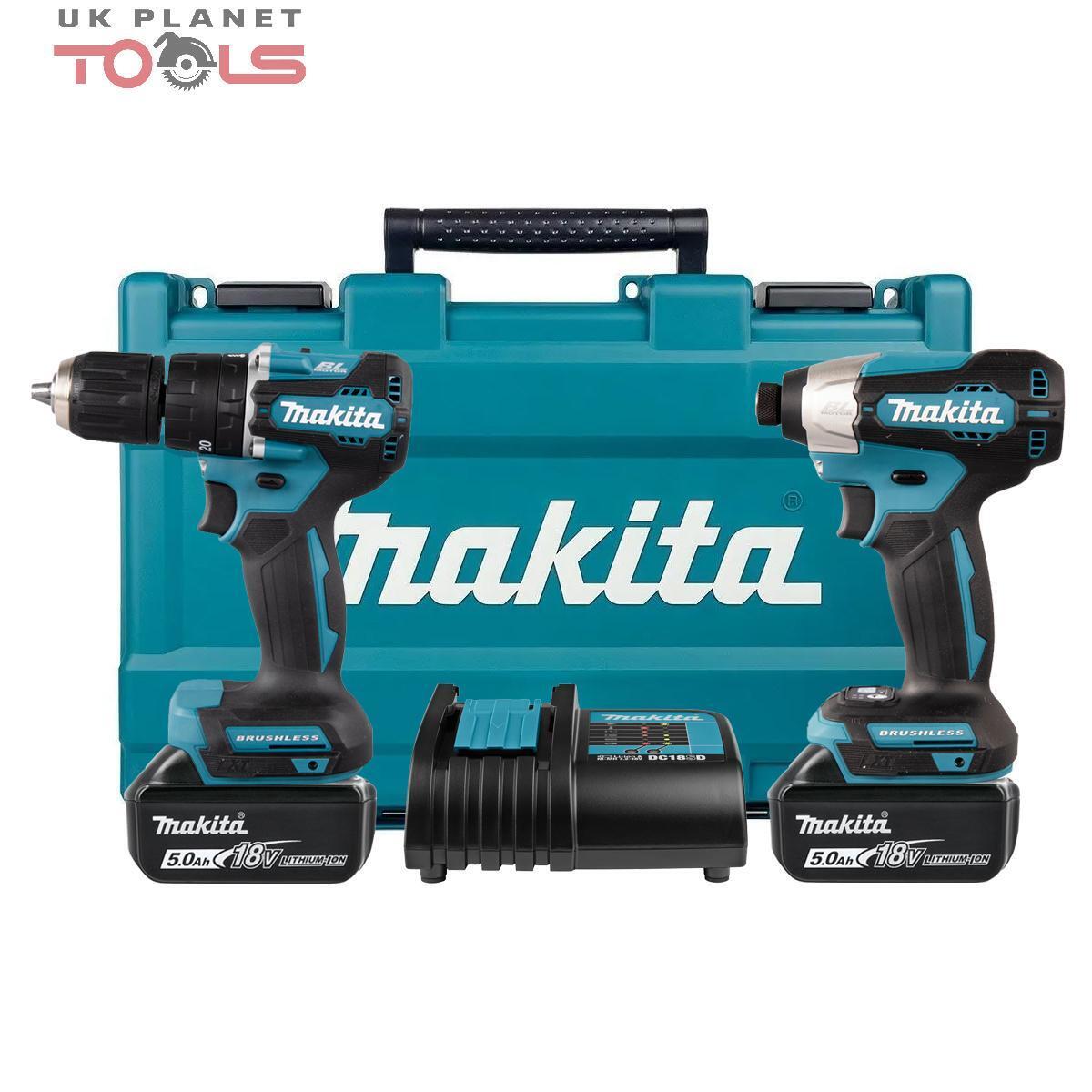Makita DLX2414ST 18V BL Combi & Impact Drill + 2 x 5Ah Batteries, Charger & Case