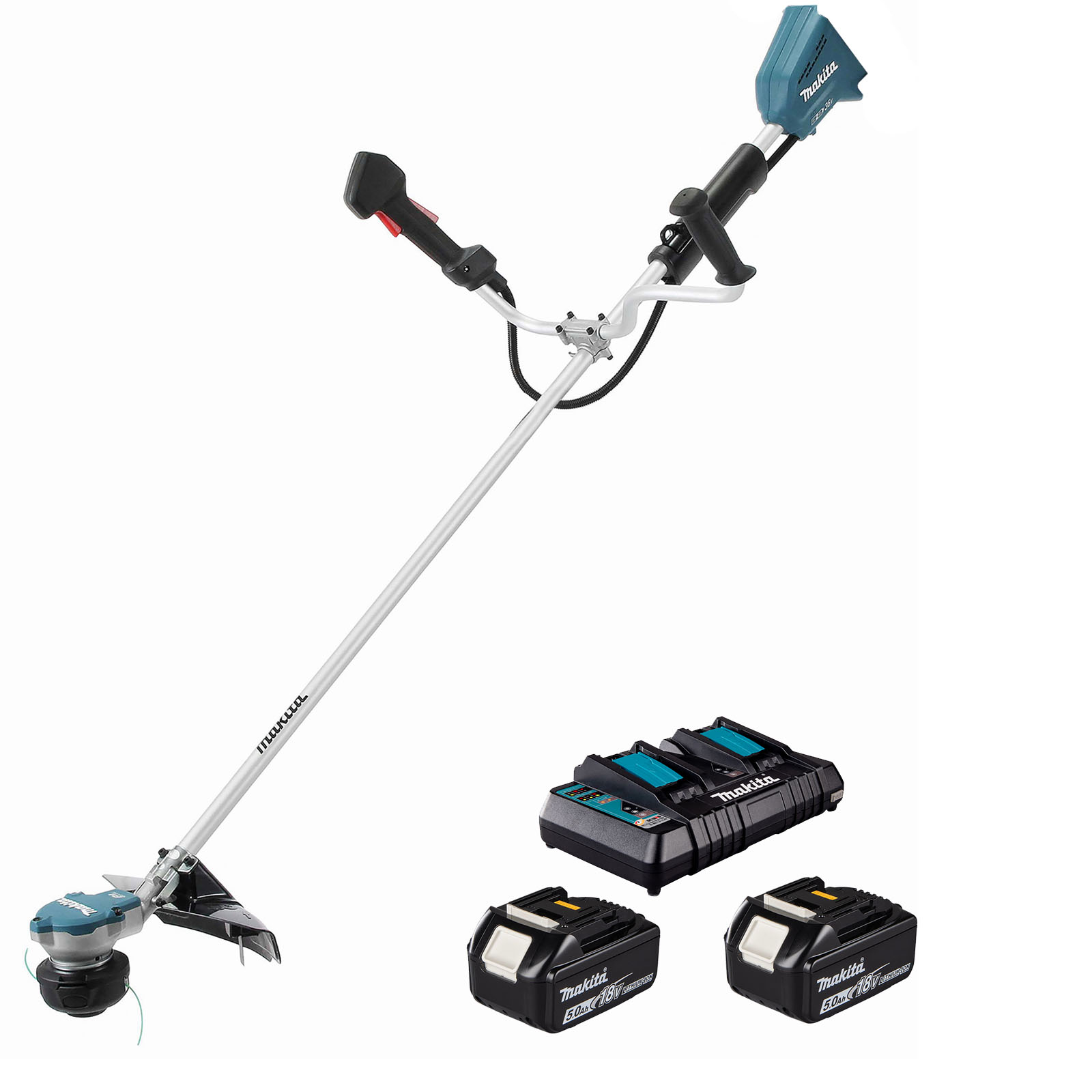 Makita DUR368A Twin 18v LXT Cordless Brushless Brush Cutter 350mm 2 x 5ah Li-ion Battery Charger