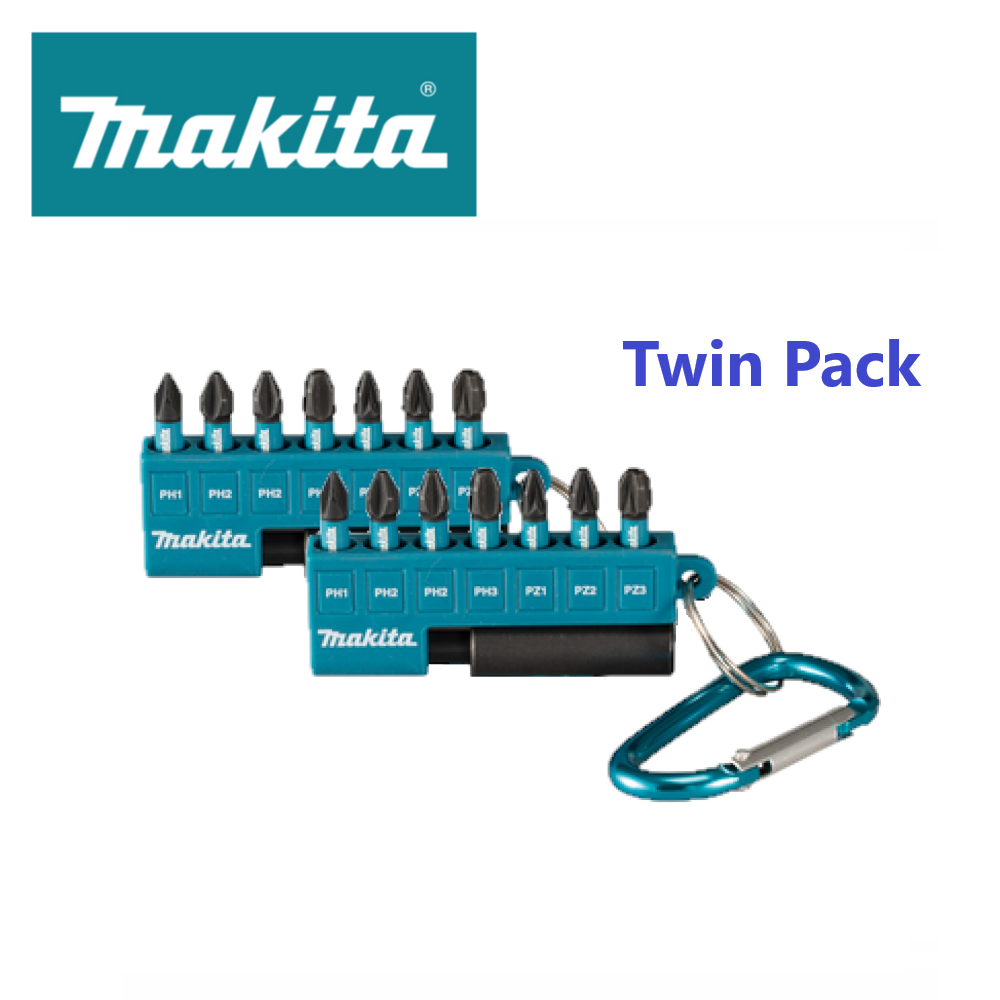 Makita E-11994 Twin Pack Screw Bit Set Impact Black 1/4"Hex Shank with Carabiner
