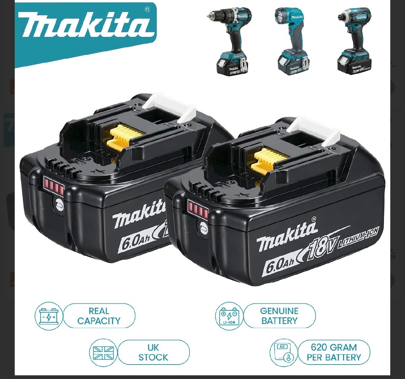 Real Capacity Genuine Makita 18v Battery bl1850 Bl1860 B LXT 6.0Ah Twin Pack