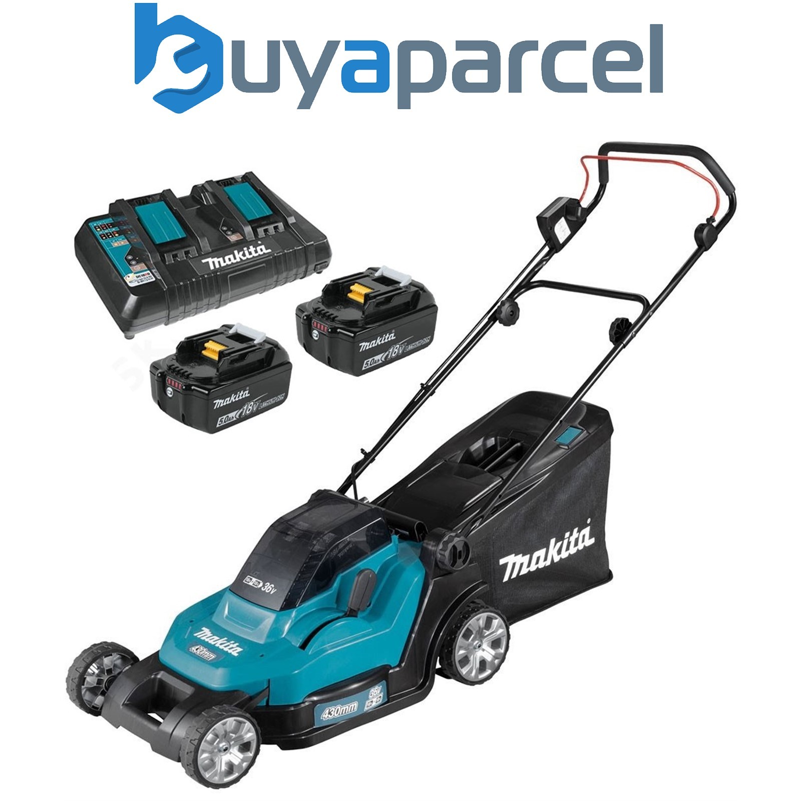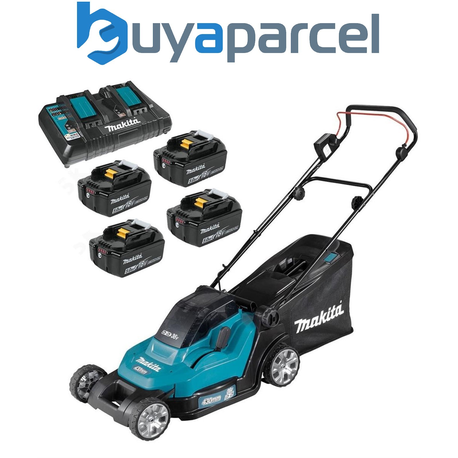 Makita DLM530 Twin 18v LXT Cordless Brushless Lawnmower 530mm 4 x 5ah Li-ion Battery Charger