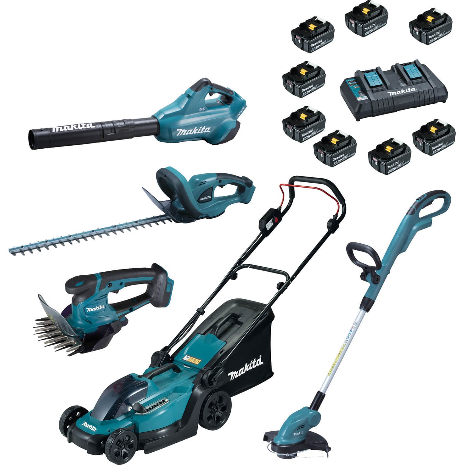 Makita 5 Piece 18v LXT Cordless Complete Garden Tool Kit 8 x 5ah Li-ion Twin or Dual Battery Charger
